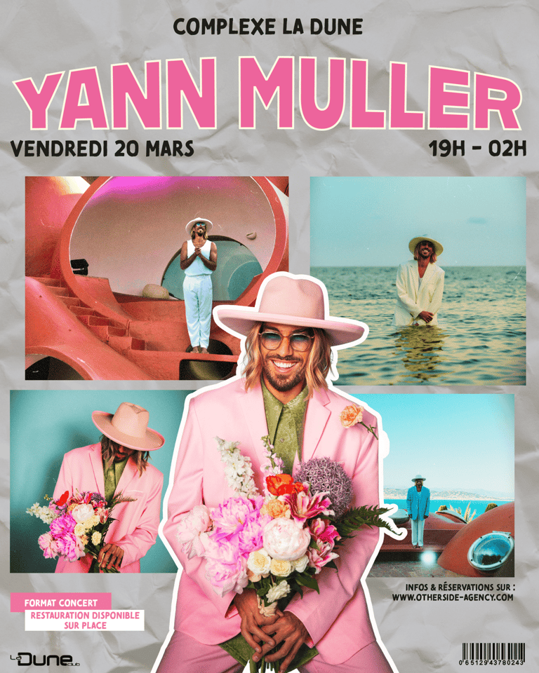 Pour cette date exceptionnelle, Yann Muller transforme le Complexe La Dune en un véritable FORMAT CONCERT, offrant une expérience musicale UNIQUE dans un lieu emblématique du sud de la France.
